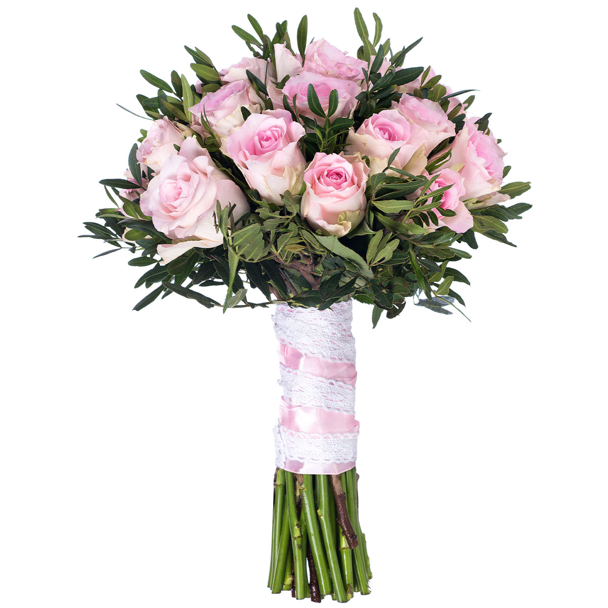 Роза одноголовая розовая, фисташка. Упаковка (лента, пленка, крафт, сетка, пленка матовая)