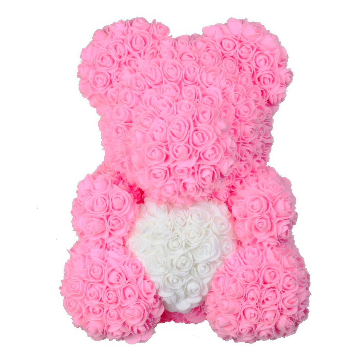 Мишка из роз розовый с белым сердцем (40 см) с доставкой по г Белокуриха: вы можете заказать подарок в интернет магазине «Флормания» по цене за 4590 руб.