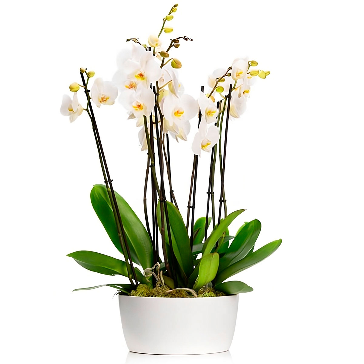 Орхидея в горшке «Белая» с доставкой по г Белокуриха: вы можете купить подарок в интернет магазине «Флормания» по цене за 5890 руб.