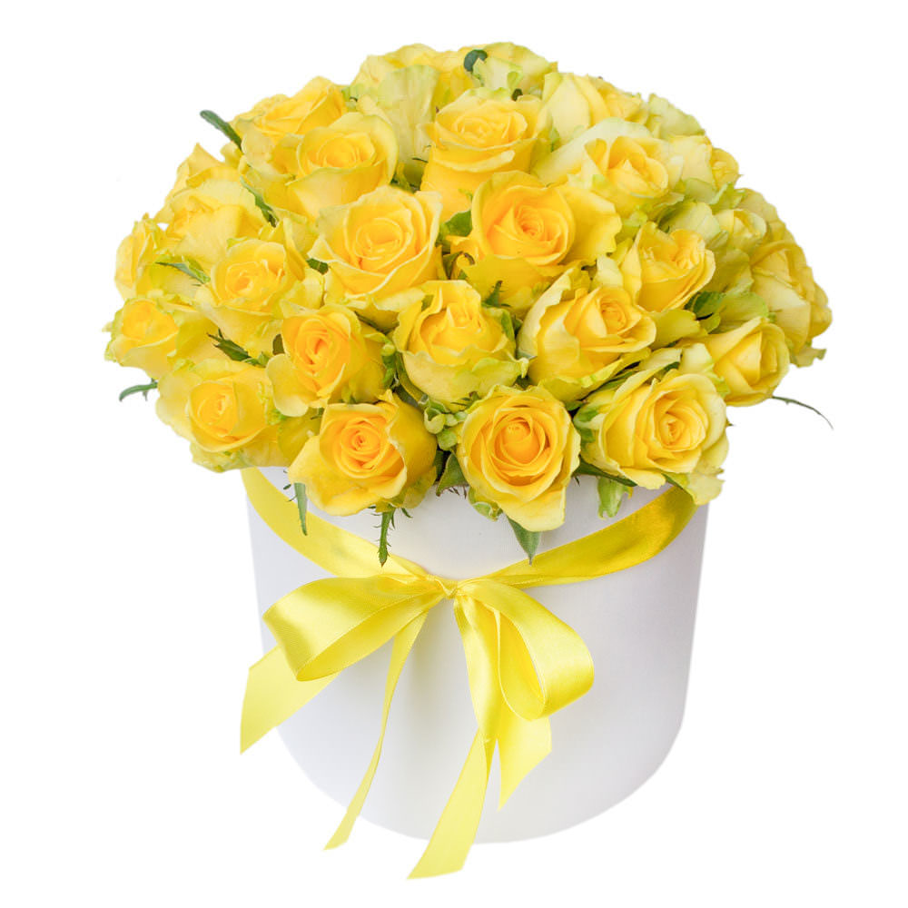 Цветы в коробке «Желтые Розы» с доставкой по г Белокуриха: вы можете заказать букет в интернет-магазине цветов «Флормания» по цене от 3290 руб.