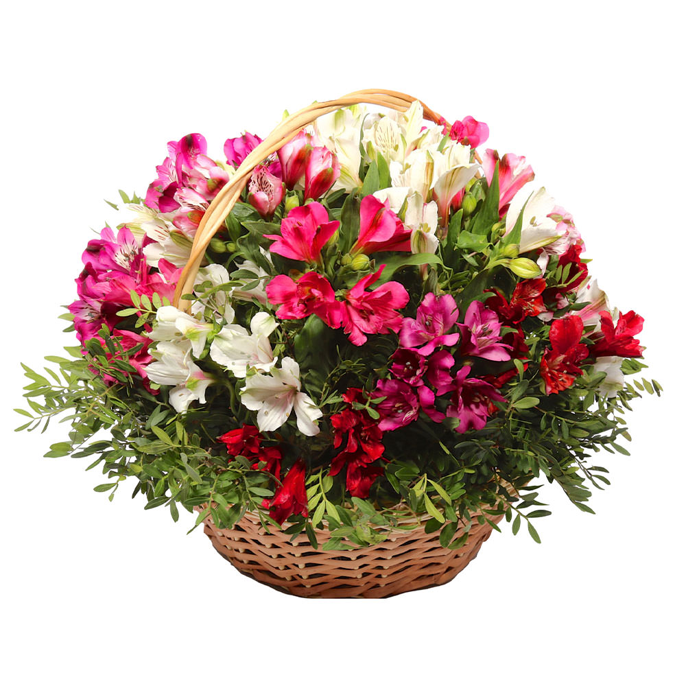 Цветы в корзинке «Краски альстромерий» с доставкой по г Белокуриха: вы можете купить букет в онлайн-магазине «Флормания» по цене от 3790 руб.